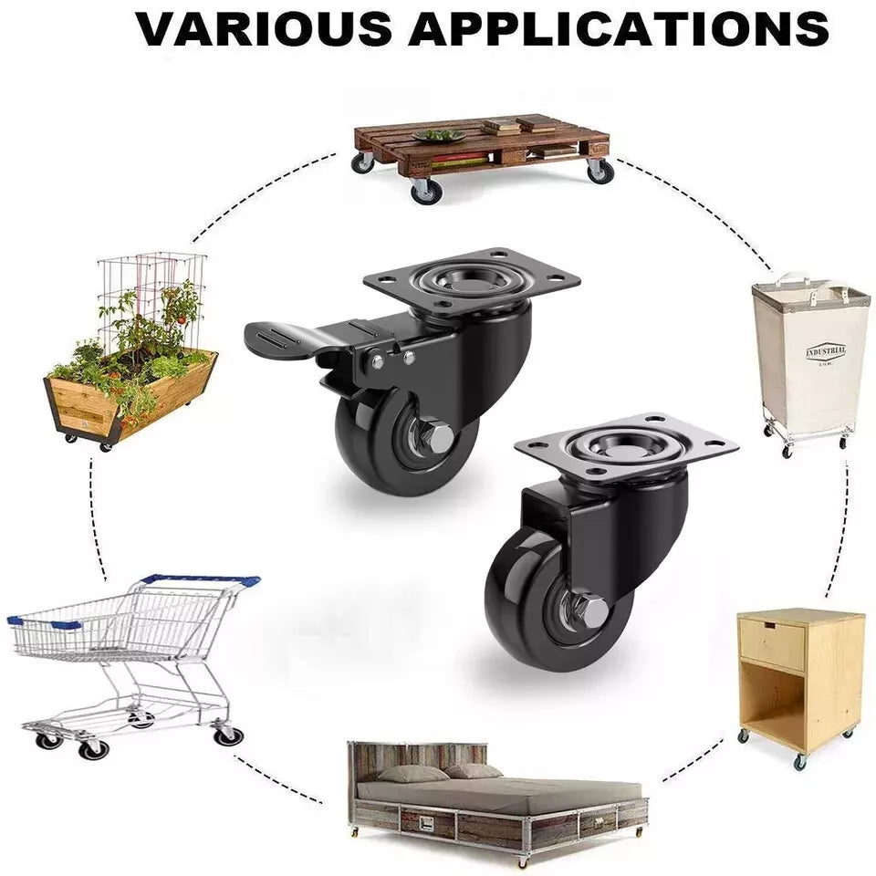 ★ MULTIPLE USE - These Polyurethane (PU) Rubber Swivel Caster Wheels are ideal for a huge variety of uses DIY to industrial applications home, schools, garage, shops, trolleys and hospitals, Perfect casters for small equipment and small space furniture including ottoman, coffee table, plant stands, bookshelves, shoe bins, toy bins, shopping carts, workbench, underbed storage